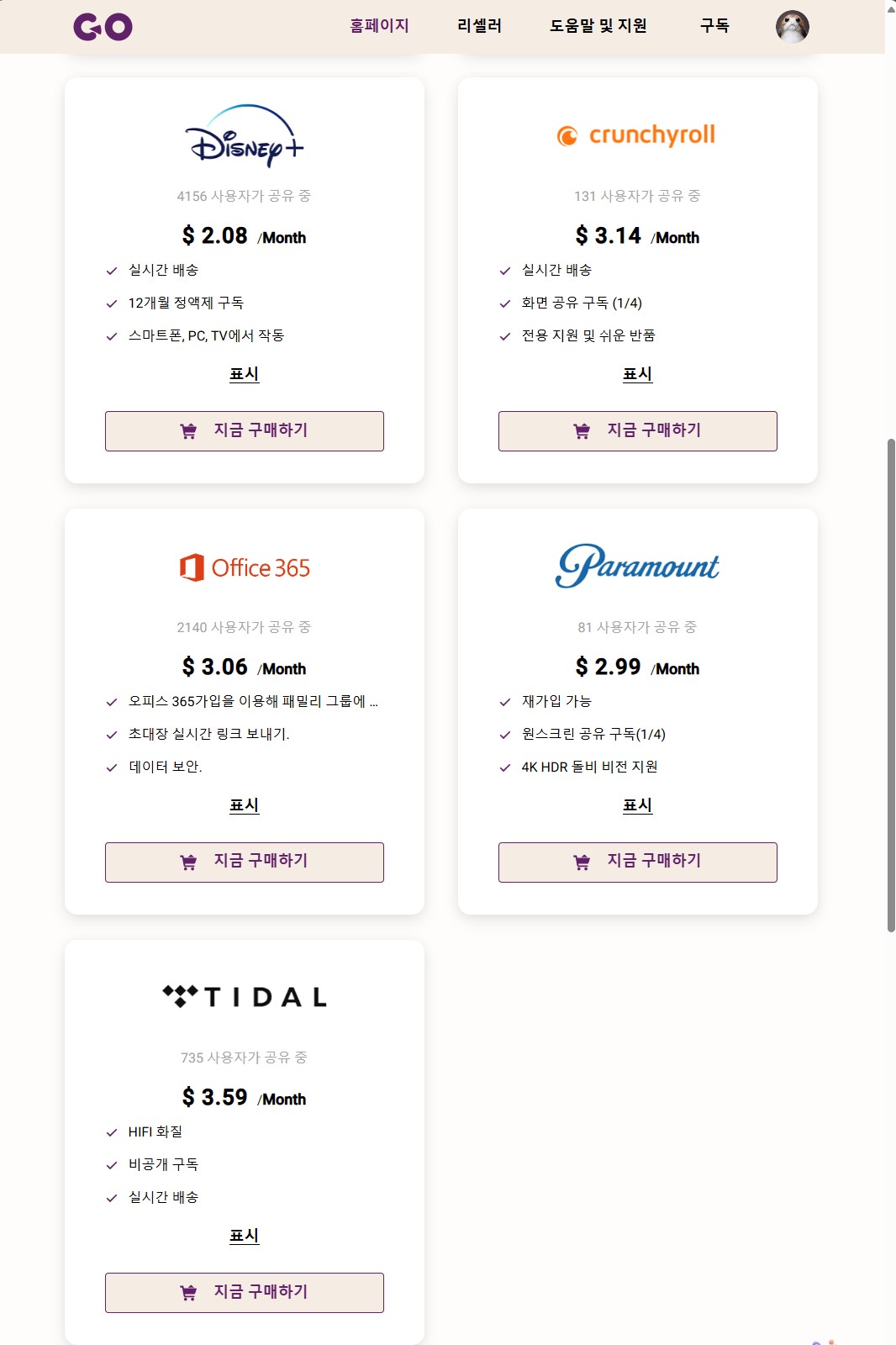 3. 원하는 구독 서비스를 선택합니다.