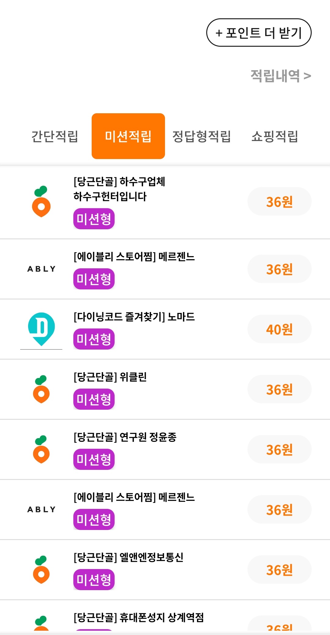 위의 예를 보면 미션 1개당 포인트가 30원 이상인 것을 알 수 있습니다. 일반 앱테크들이 평균 10원 인걸 감안하면 3배 이상의 포인트를 지급한다는 것을 알 수 있습니다.