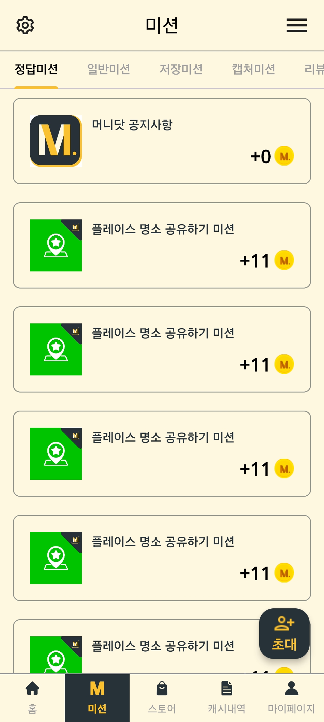 정답 미션 (공유 미션 포함)