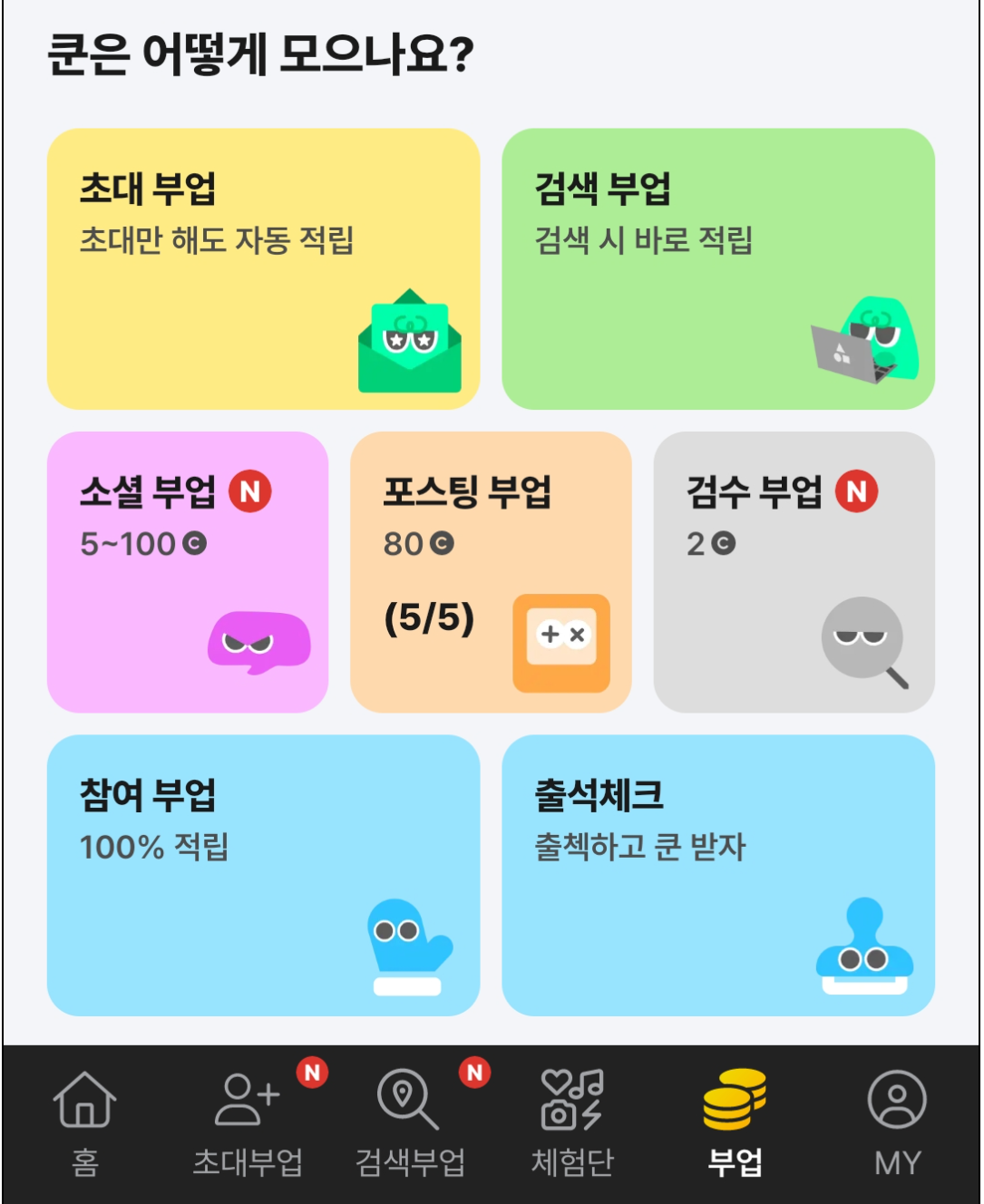 포스팅 부업 하루 최대 400원 수익, 검수부업 간헐적으로 2원 발생, 출석체크는 5일 연속 출석 시 100원 15일 연속 출석시 300원 한달 연속 출석시 500원을 지급합니다.