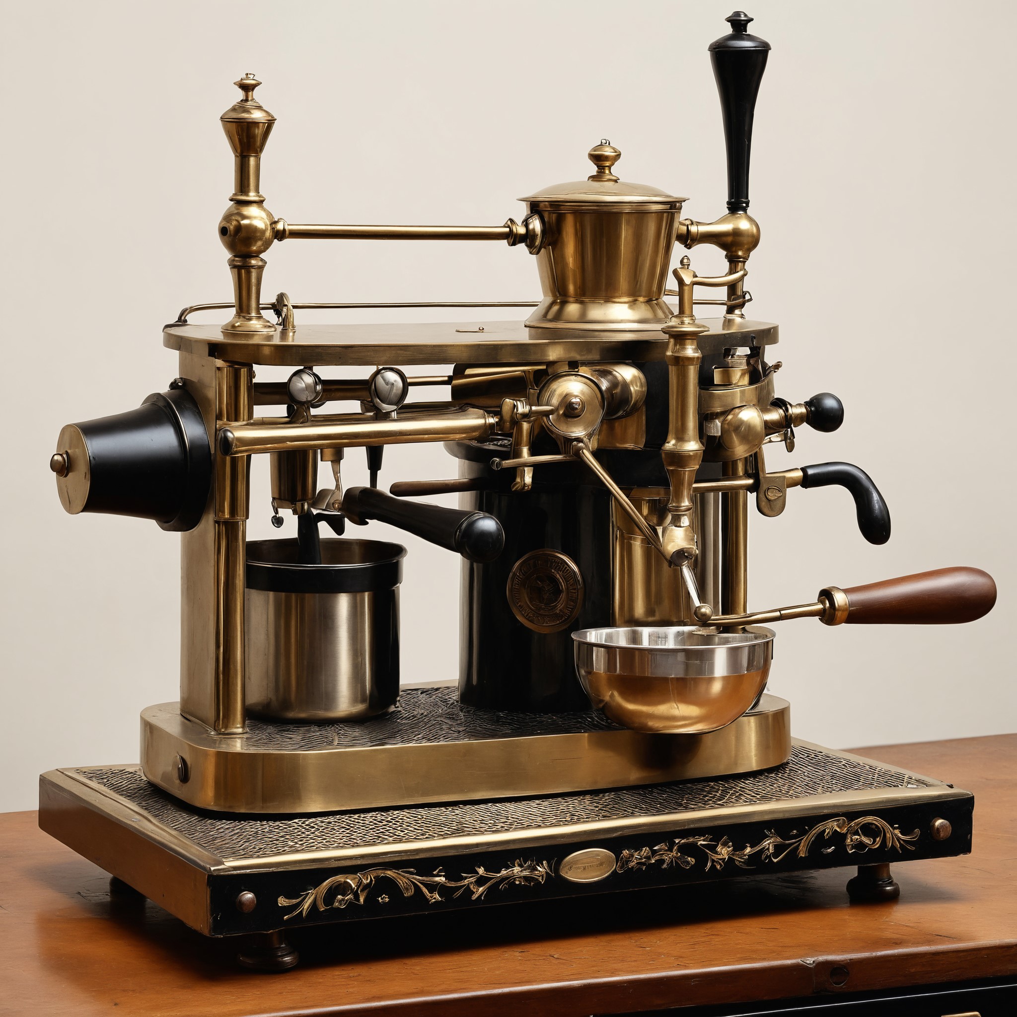1901년, 밀라노의 루이지 베체라(Luigi Bezzera)가 에스프레소 머신에 대한 여러 가지 개선 사항을 특허 출원했습니다. 베체라의 발명품은 이전 모델들보다 훨씬 실용적이고 컴팩트했습니다. 그의 머신은 구리, 청동, 황동으로 만들어졌으며, 당시 유행하던 아르누보 스타일로 화려하게 장식되었습니다.